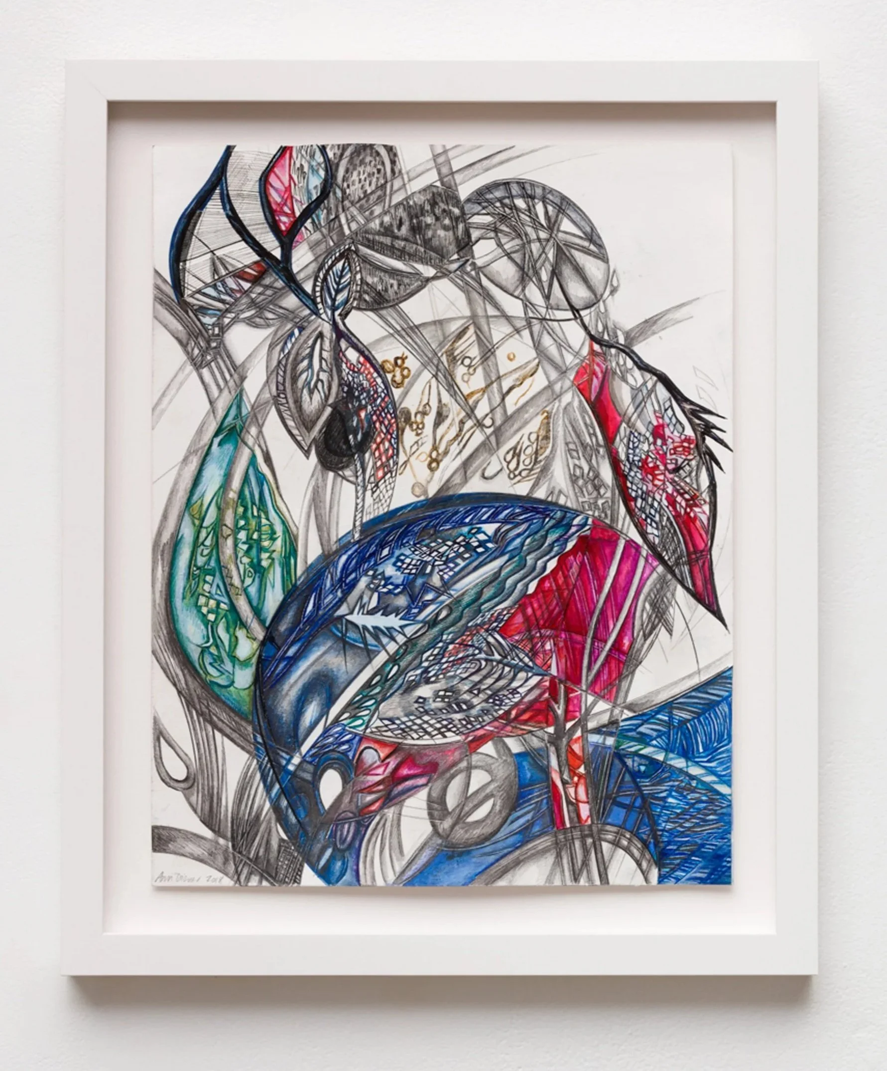Graphite, colored pencil, watercolor, ink and cut paper on paper