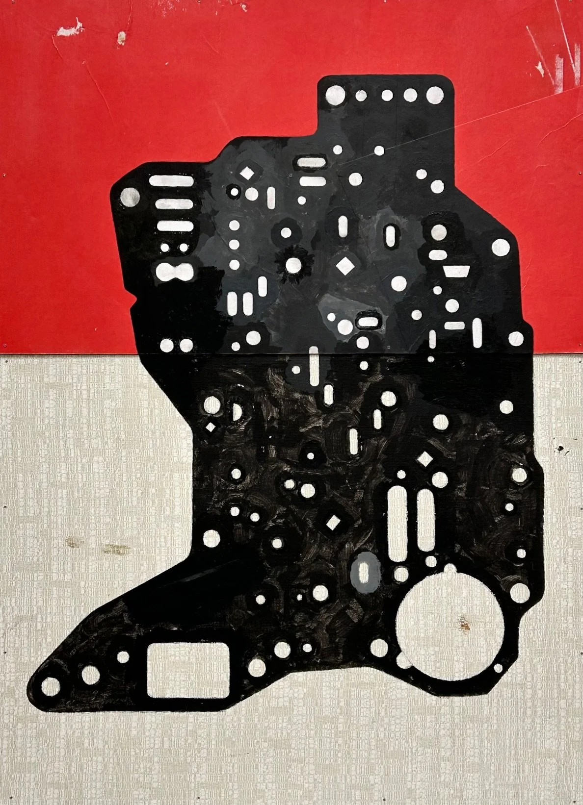 Influenced by the domestic and physical landscapes around him, he frequently returns to the colors, patterns, and objects that define lived spaces. These references enrich his compositions with nuance and authenticity.