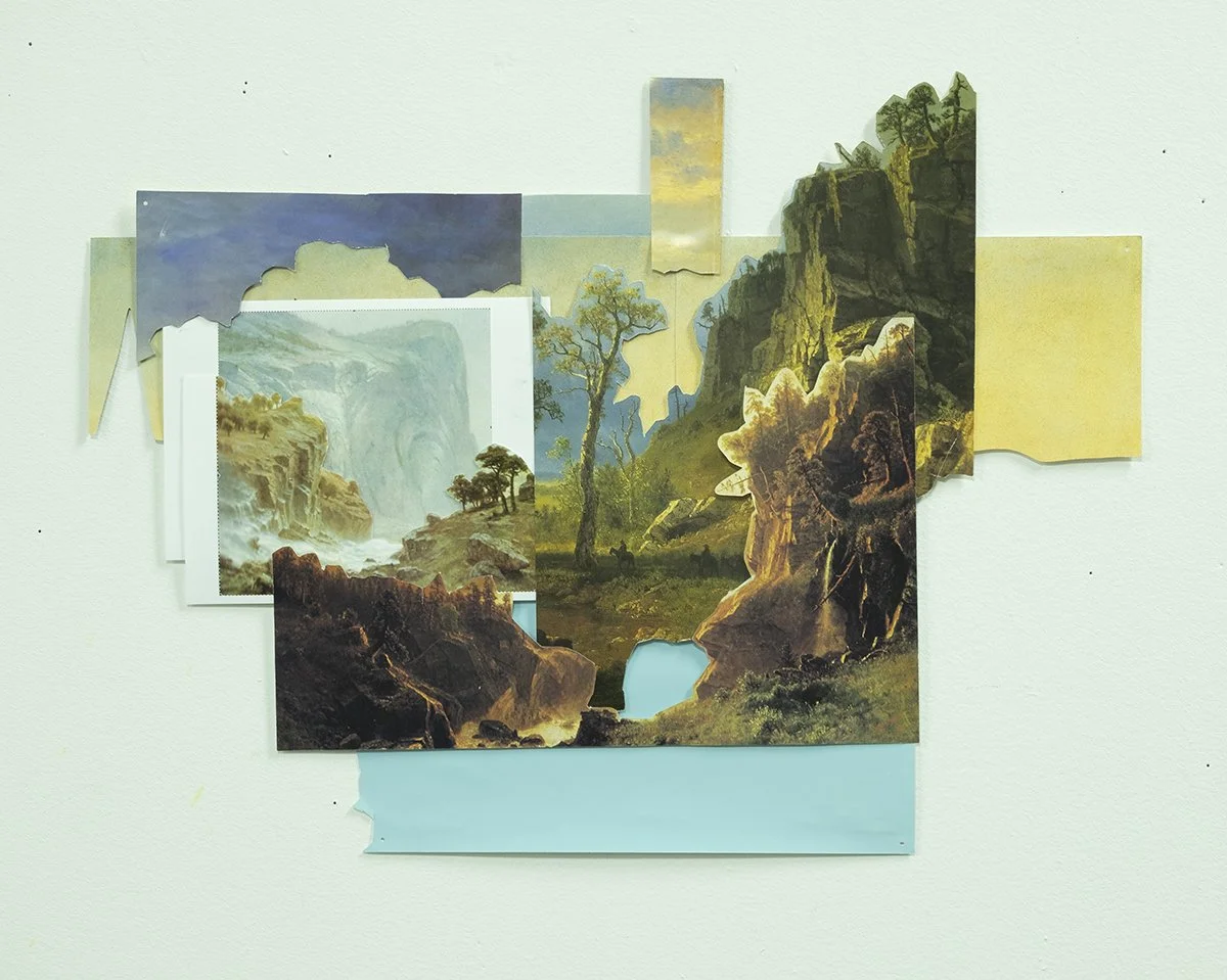 Jerrin Wagstaff (b. 1979, Salt Lake City, UT) is a Los Angeles–based artist whose work examines the construction of American identity through the lens of landscape. His recent series, American Mythology, explores how images of the American West—particularly those shaped by 19th-century Romantic painters such as Albert Bierstadt—continue to influence contemporary perceptions of nationhood, spectacle, and desire. Drawing from both historical and contemporary sources, Wagstaff combines handmade and digital processes to deconstruct and reassemble imagery into paintings and collages that exist between the real and the imagined. His work reflects the ways visual culture is now mediated through screens and devices, where landscapes are not only experienced but curated, manipulated, and consumed. Through vibrant, saturated color, abstraction, and shifting perspectives, Wagstaff creates immersive environments that both attract and destabilize the viewer. His landscapes embrace contradiction—at once expansive and flat, beautiful and threatening, familiar and strange—inviting viewers to reconsider their relationship to place and the myths embedded within it. Wagstaff received his BFA from Brigham Young University and his MFA from California State University, Long Beach. His work has been exhibited widely, including solo exhibitions at Modern West and Another Year in LA, and has been featured in publications such as New American Paintings and Artillery Magazine. He lives and works in Los Angeles.