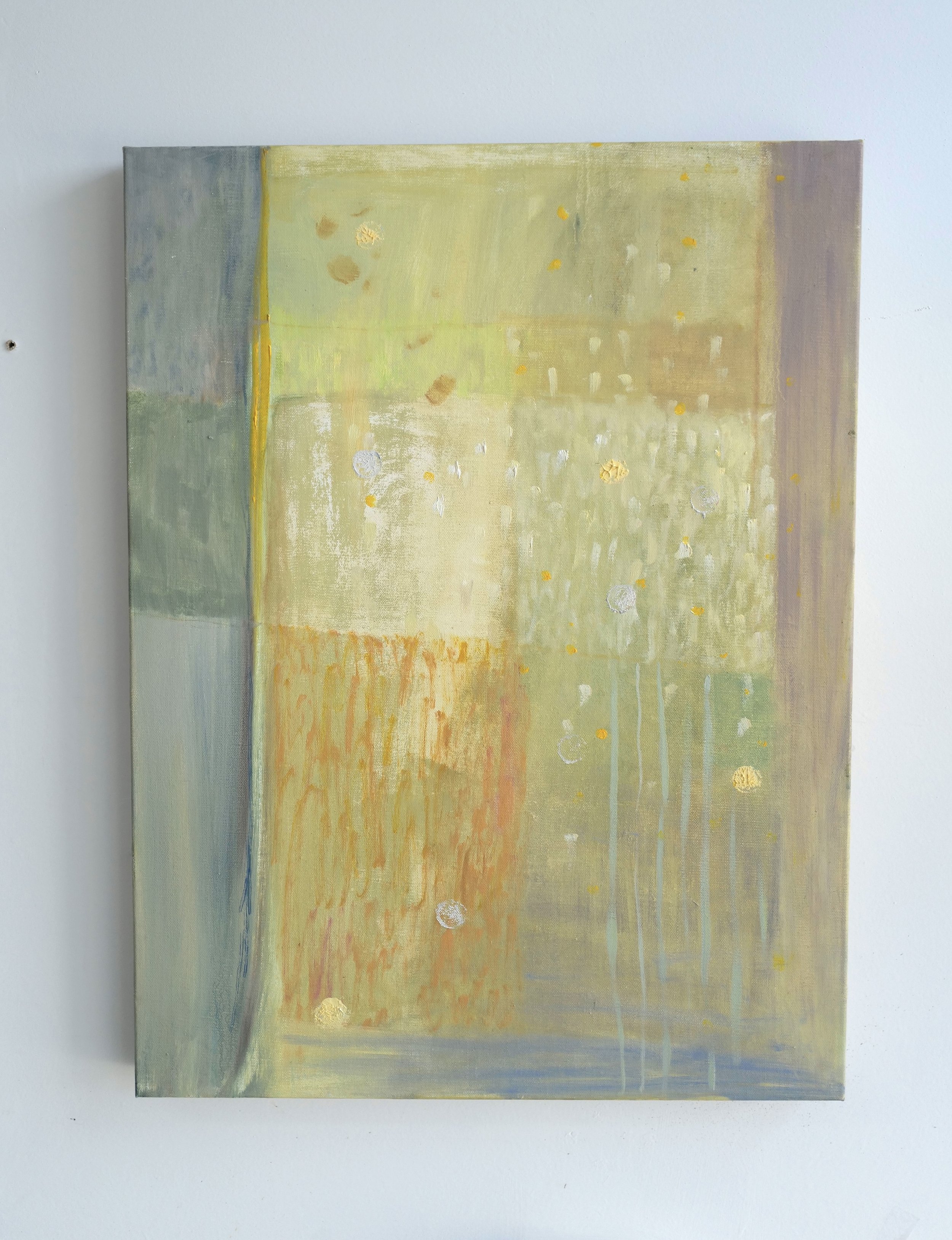 Yamazaki's practice navigates diasporic experiences of in-betweenness, where presence and absence coexist through thinly veiled transparencies that obscure visibility, reflecting the pressure many immigrant families feel to remain unnoticed. His paintings often center interior spaces and everyday routines, drawing from memories both real and reimagined. Time spent in his parents’ Japanese restaurant, which functioned as a formative home, recurs as a site where people gathered, worked, and intersected.