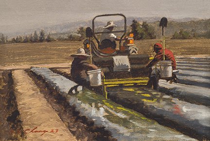 Warren Chang is a California based fine artist, best known for his paintings depicting the fieldworkers of Monterey County. His realist paintings are reminiscent of 19th century painters, in particular Francois Millet (1814 – 1875) who also depicted scenes of peasant farmers in rural France. Chang’s paintings depict subtle narratives that celebrate the human spirit.