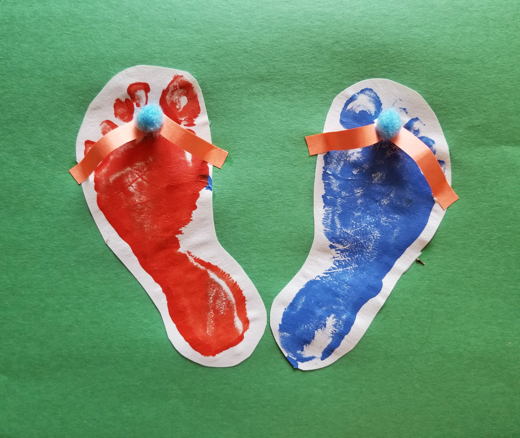 1. Have the student seated, and then paint the bottom of the student’s foot. Be careful to not apply too much paint, as the foot print won’t show. And to not apply too little of the paint, as the foot may get stuck and rip the paper. Let dry. ~15 minutes